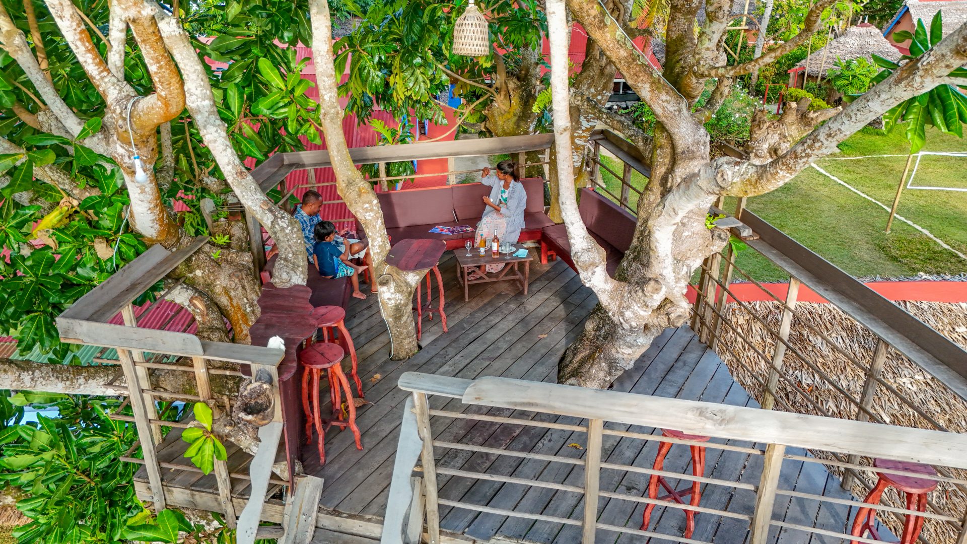 Parmi les trésors du Repaire des Pirates, un bar unique perché dans un arbre majestueux, offre une immersion inoubliable au milieu de la nature luxuriante. Accessible par des passerelles suspendues, ce bar d’exception invite les visiteurs à savourer des cocktails exotiques, des rhums locaux et des délices malgaches dans une ambiance chaleureuse et conviviale. Ce lieu magique est un véritable havre de paix pour les voyageurs en quête d’évasion, d’authenticité et d’instants mémorables.